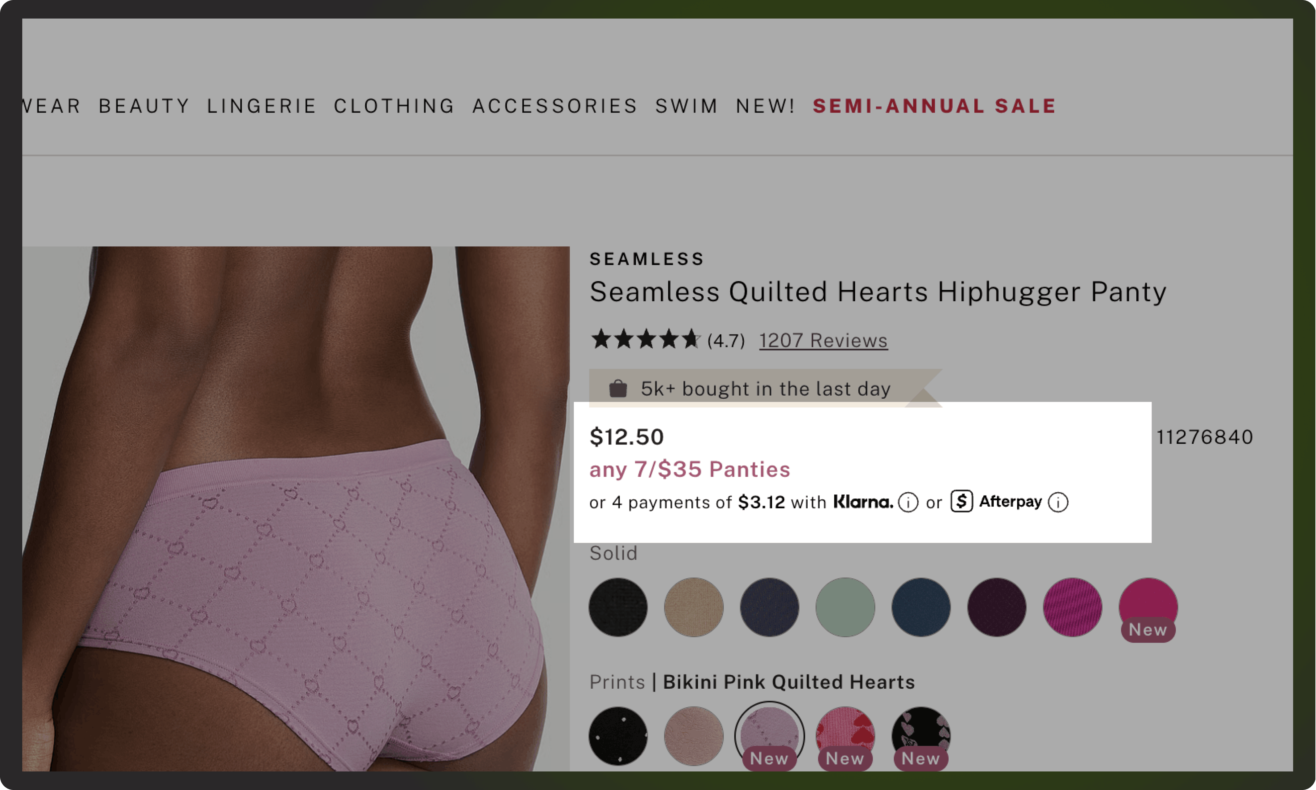 Victoria’s Secret’s real mix and match deal in their stores, like they do in their online stores. One pair of panties may cost $12.50, but at checkout they might offer 7 for $35. That is a real mix-and-match deal: shoppers are free to choose any color and pattern they like while getting discount for that. If this is not what shoppers are looking for, then what is it?